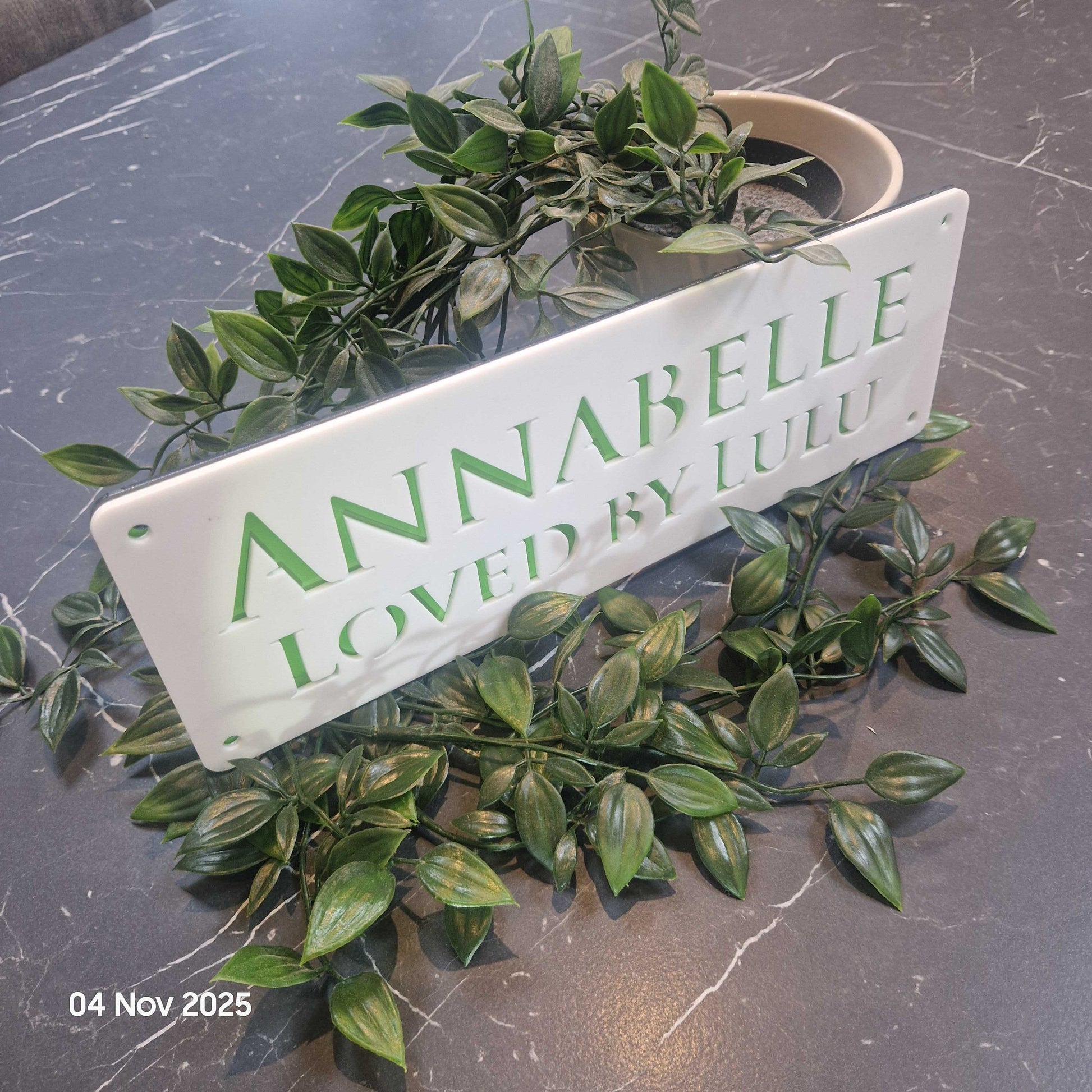 This listing is laid out slightly differently to the others. Please select all options from the drop down boxes for each variation. This listing is for a WHITE Front plate, you need to select the back plate colour and logo you want on your sign. Then in notes section add the name and any other details such as emergency contact number/ loved by such-a-body etc... or simply have no logo and just the name.